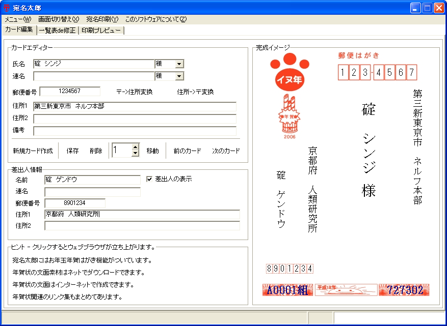 宛名印刷&簡単な住所管理ができるフリーウェア。必要事項を入力するだけで、あっという間に宛名書きが完成!操作も簡単!