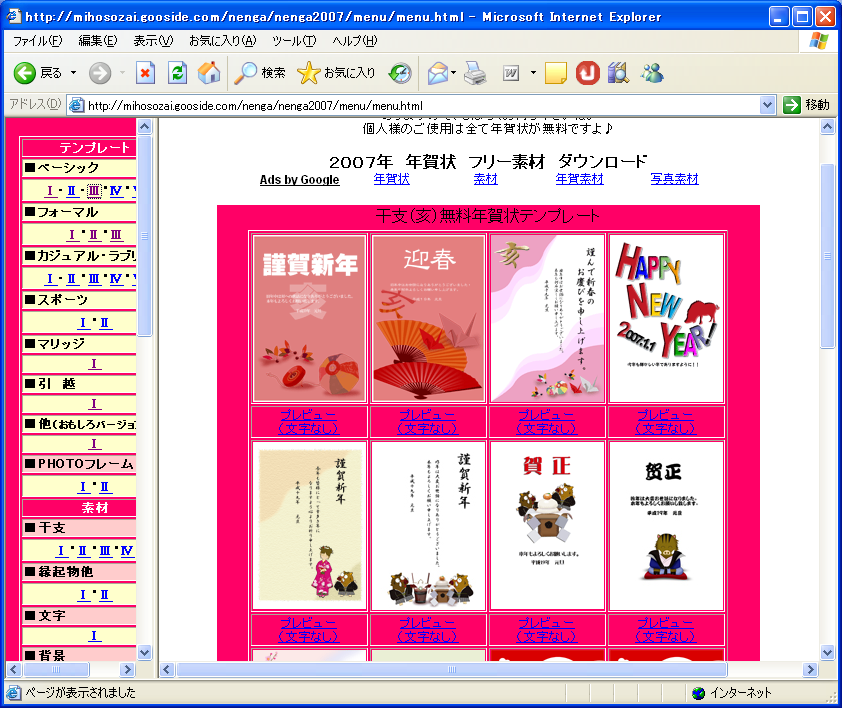 Miho's House フリー素材 2007年賀状ダウンロード